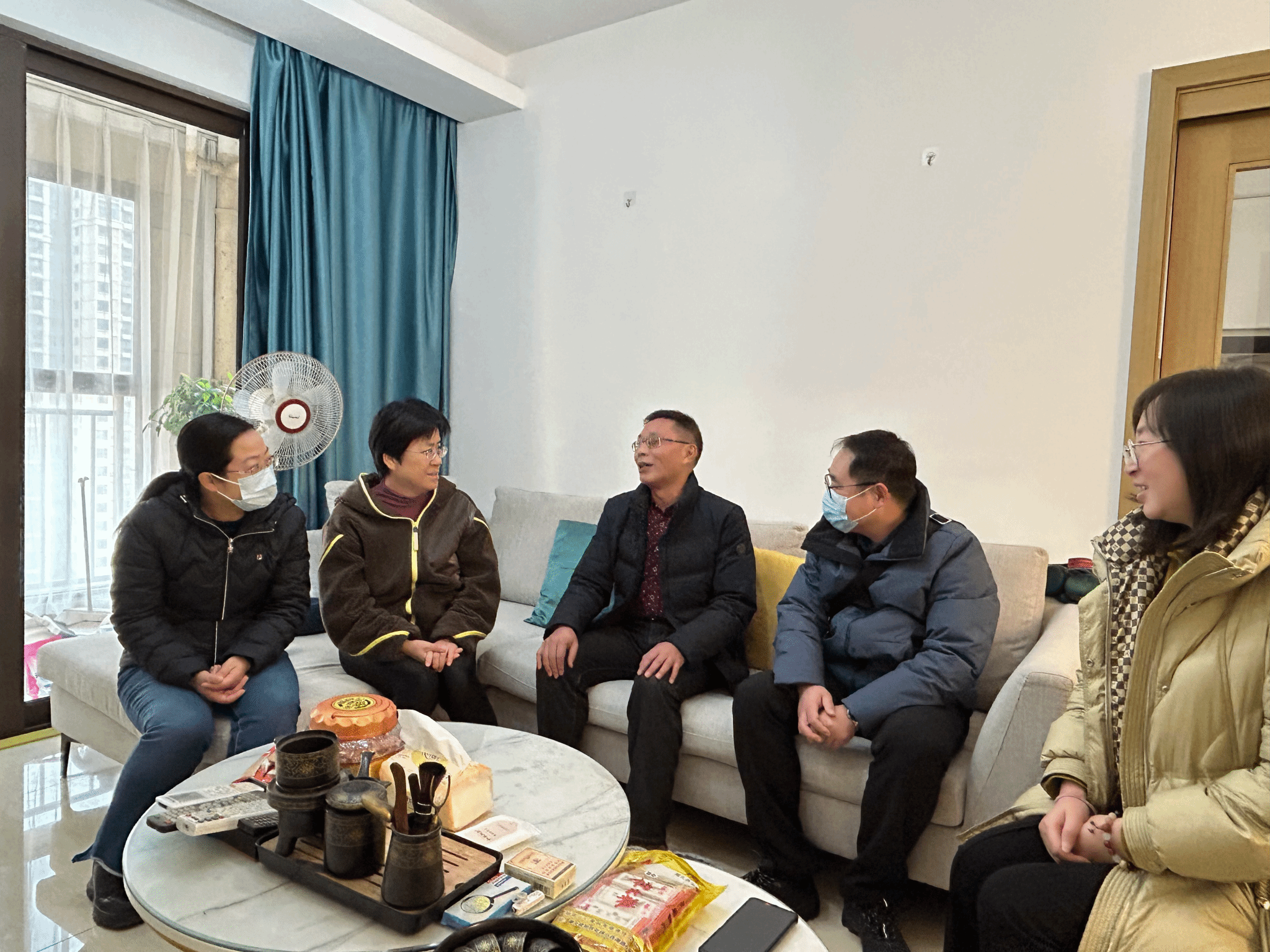 1月27日,春寒料峭,学院领导党委书记谢晓萍、院长潘飞、副院长蔡亚君和副书记姚瑶一行在春节前夕看望慰问退休教师,向他们致以节日的祝福,嘱咐他们保重身体,多回学校和学院看看。