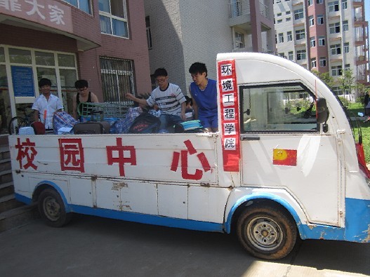 在得知生物党支部学生搬迁工作后,后勤集团校园服务中心党支部立即安排校园电瓶车协助学生搬运行李。在行李搬运前,校园电瓶车已开至学生公寓10栋门口,在同学们放好行李后,插上党旗的电瓶车好比一面飘扬的党旗,满载学生的行李开往学生公寓7栋,温暖着每位同学们的心。