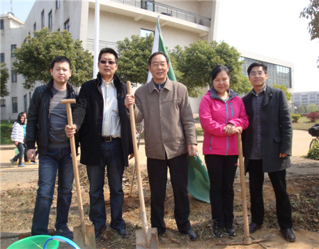 3月21日,环境工程学院领导班子、教师代表和部分同学在学校西门附近绿化带参加学校统一组织的植树活动,为纺大校园增添新绿。