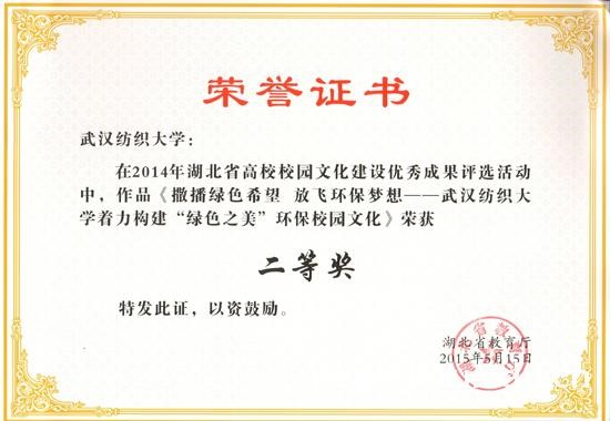 着力构建“绿色之美”环保校园文化》获湖北省高校校园文化建设优秀成果二等奖。