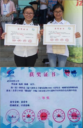 3.罗诗露等同学作品获全国“挑战杯”竞赛二等奖,湖北省第十届“挑战杯”二、三等奖。