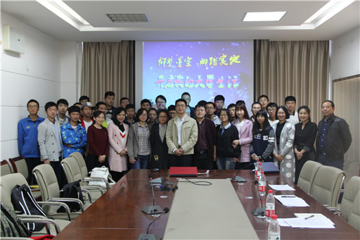 校领导、机关单位结对学生班级是我校推进大学生思想政治教育工作的新做法, 10月29日下午,校党委组织部联系环境学院结对班级,在理工楼三楼会议室开展了“仰望星空,脚踏实地,开启我的大学生活”主题班会,党委组织部部长陈朝阳、副部长涂耀威、环境学院分党委副书记张莎莎,组织部全体工作人员、新生辅导员、班主任及给排11501班同学参加了此次班会。