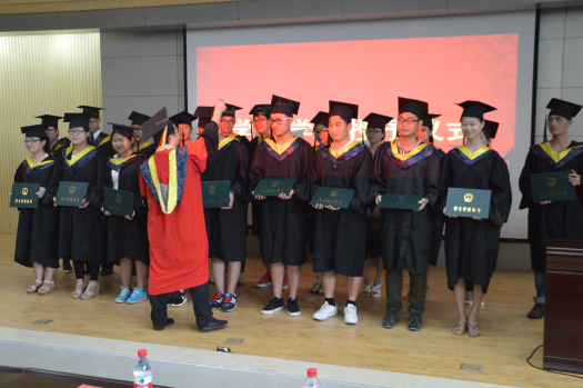 毕业典礼的最后,夏东升院长为毕业生们颁发学位证书,拨正流苏。学院的领导和老师与毕业生并合影留念。