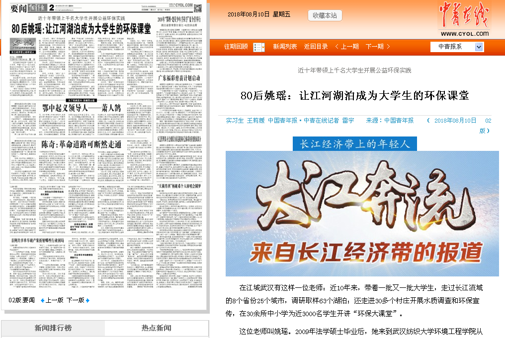 姚瑶还带领学生积极承办、参加“世界自然基金会学术年会”等各层次的环保交流活动,开阔学术视野,指导学生撰写水质分析报告,对当地环境发展和生态保护提出建议。“每年至少带领20名‘绿协’大学生参加高层次的环保论坛。”姚瑶介绍。