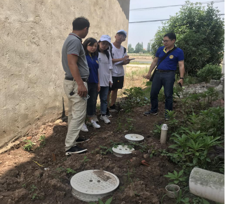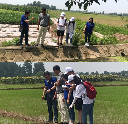 座谈结束后,金水河一村李倪向阳书记带领队员们去实地参观了村里生活污水处理设施入户和美丽乡村建设情况,队员们看到每家每户都建有沼气池集中处理生活污水,由政府补贴,有效解决了农村生活污水处理的困难;走在田垦上,队员们看到乡村的农田修建了沟渠,灌溉水质流动性很强,潘教授仔细观察了农田的水质,给予了专业意见。