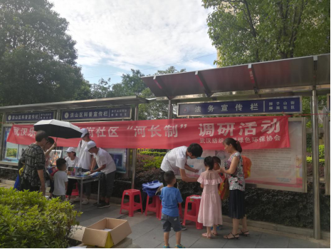 绿色环保协会“美丽中国,武汉乐水行”暑期社会实践团队前往北洋桥鑫社区开展东杨港“河湖长制”宣传活动,同时前往北洋桥鑫同文国际幼儿园开展了环保宣教活动,并在社区展开了问卷调查以及趣味环保活动。
