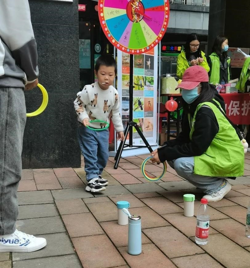 在填写过调查问卷之后,绿协成员邀请社区居民参与套圈和垃圾分类等小游戏,赠送精美奖品。渐渐的居民被绿协成员的热情和新颖有趣的活动所吸引纷纷走上前来,主动向我们了解环保知识、参加湿地保护小游戏和垃圾分类小游戏。社区的小朋友们对协会的环保小游戏产生了浓厚的兴趣,在这个电子产品垄断孩子们娱乐时间的年代,孩子们通过环保游戏,既摆脱了电子产品,又从小就培养了环保知识。