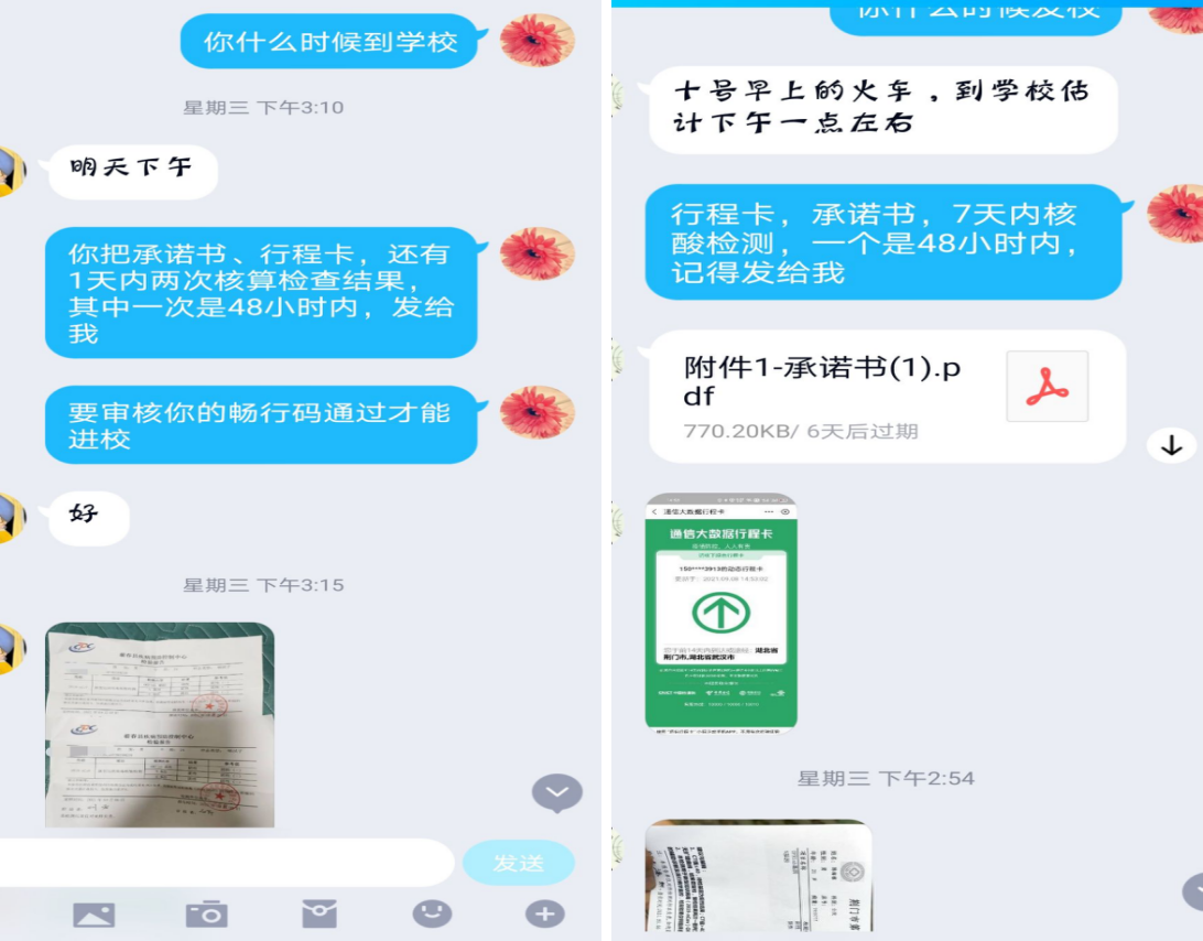 学院第一时间将返校要求告知同学们,严格落实返校前14天健康打卡和轨迹监测,合理安排返校时间节点,甚至具体到某一时段到校人数。提醒同学们规划好行程、做好途中安全防护,确保每位符合返校条件的同学按时返校。学院的周密部署、精心组织、严阵以待,使学生返校工作平稳而有序。