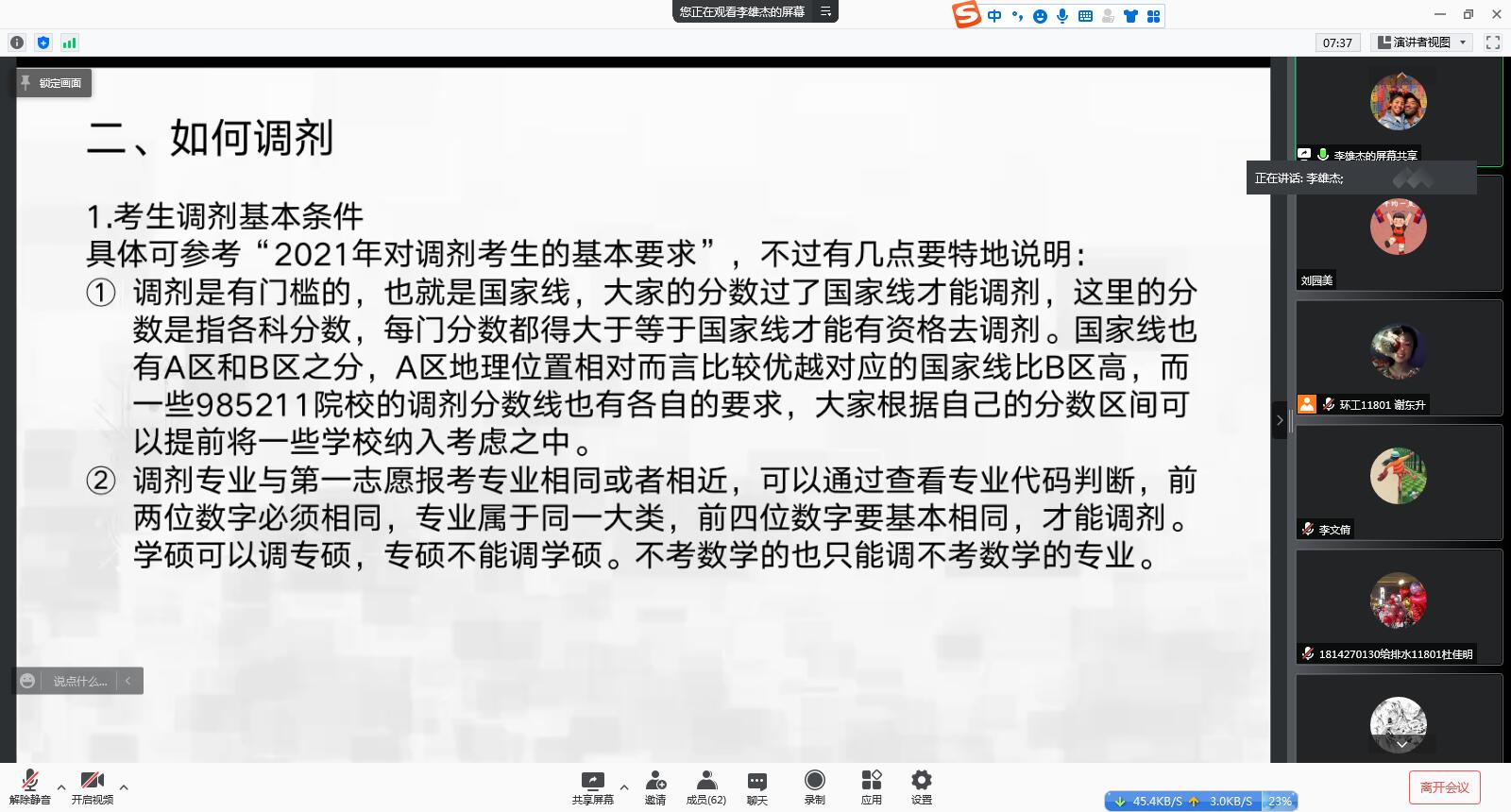 在腾讯会议举行研究生调剂专题讲座。百花堂
