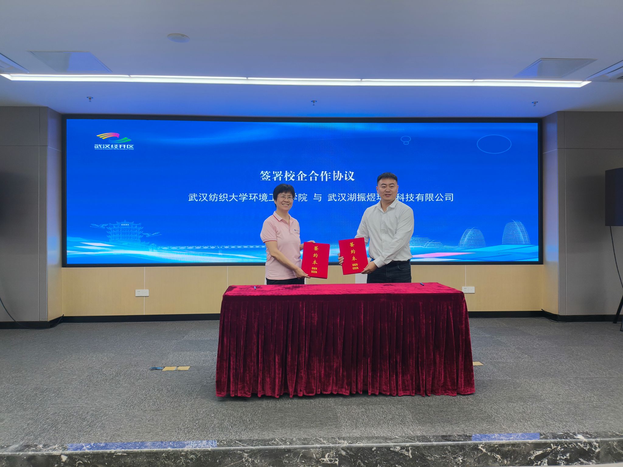 就业实习实训基地”牌;学院党委书记谢晓萍介绍了学院与经开区开展校企合作的情况,并代表学院与武汉湖振煜环境科技有限公司就“河湖底泥基环境功能材料的开发与应用研究技术”签署了合作框架协议;格力电器(武汉)有限公司、海尔武汉基地、武汉精隧科技、武汉泰沃滋信息技术、武汉湖振煜环境科技、湖北腾飞人才、武汉金发科技、武汉 维晨科技、武汉圣禹智慧生态环保等9家公司负责人依次介绍企业情况,并围绕企业人才需求、实习实训内容、就业岗位等开展了深入交流与探讨,校企双方不断探索新的合作可能。