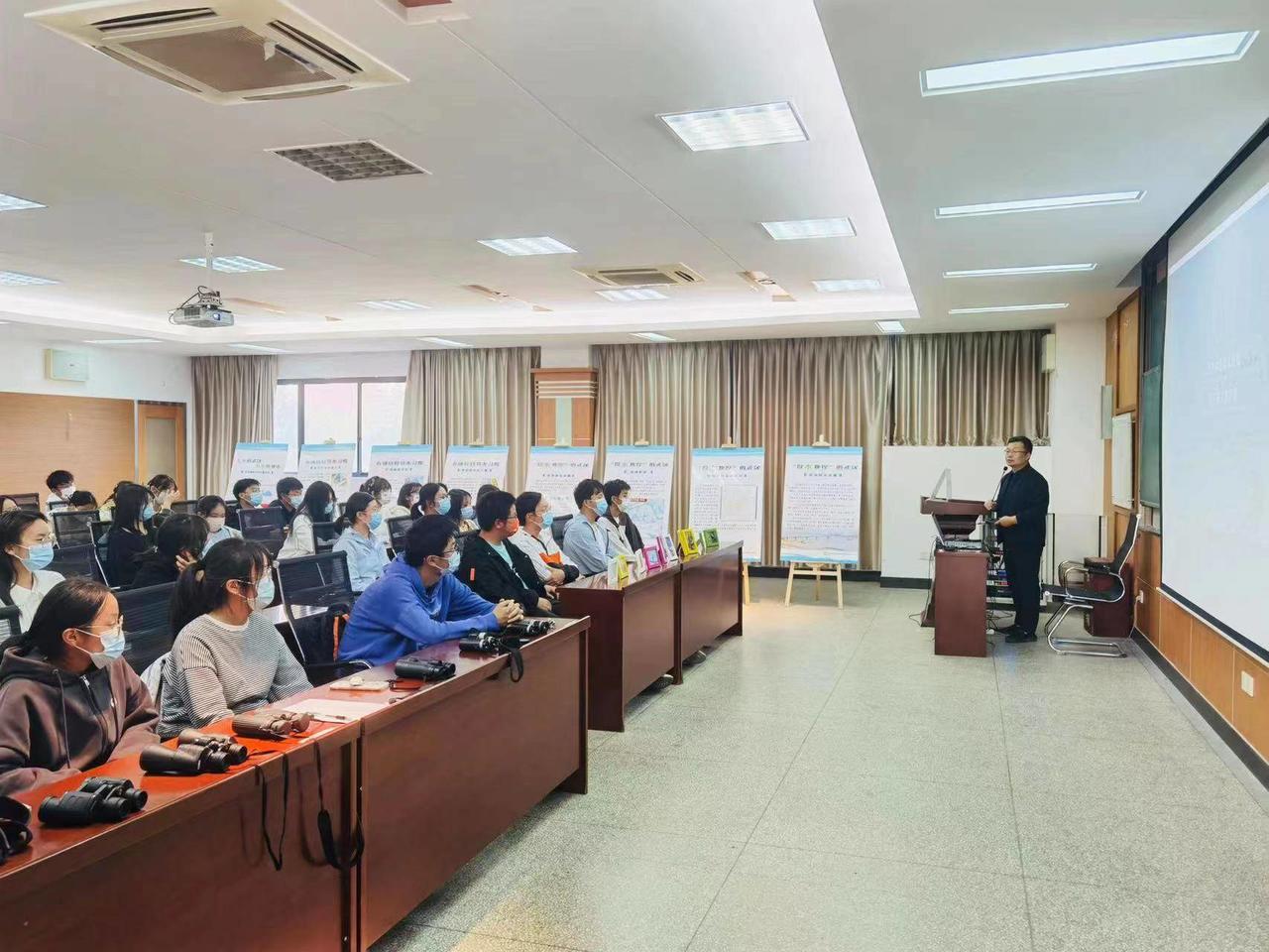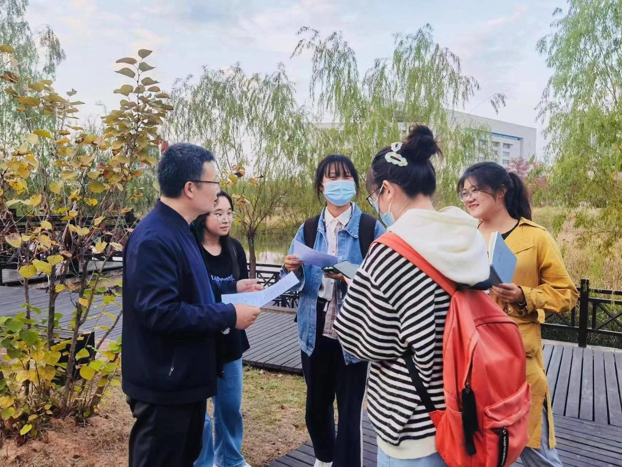 环境学院夏东升教授带领湿地保护志愿者50余人走进校园内的小微湿地开展观鸟、湿地巡护活动。