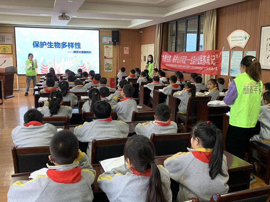 绿色环保协会的志愿者接力,细致地讲解生物多样性跟人类生活“衣食住行”等方方面面的关系。“生活中很多东西都源于自然界的动植物,而人类对这些资源的过度开发与索取,对自然也造成了破坏。”志愿者通过孩子们耳熟能详的小龙虾、水葫芦等,一一向同学们介绍“生物多样性破坏”“外来物种入侵”等专业知识,同学们边听边谈感想,一颗人与自然和谐相处的种子也就此悄悄种下。