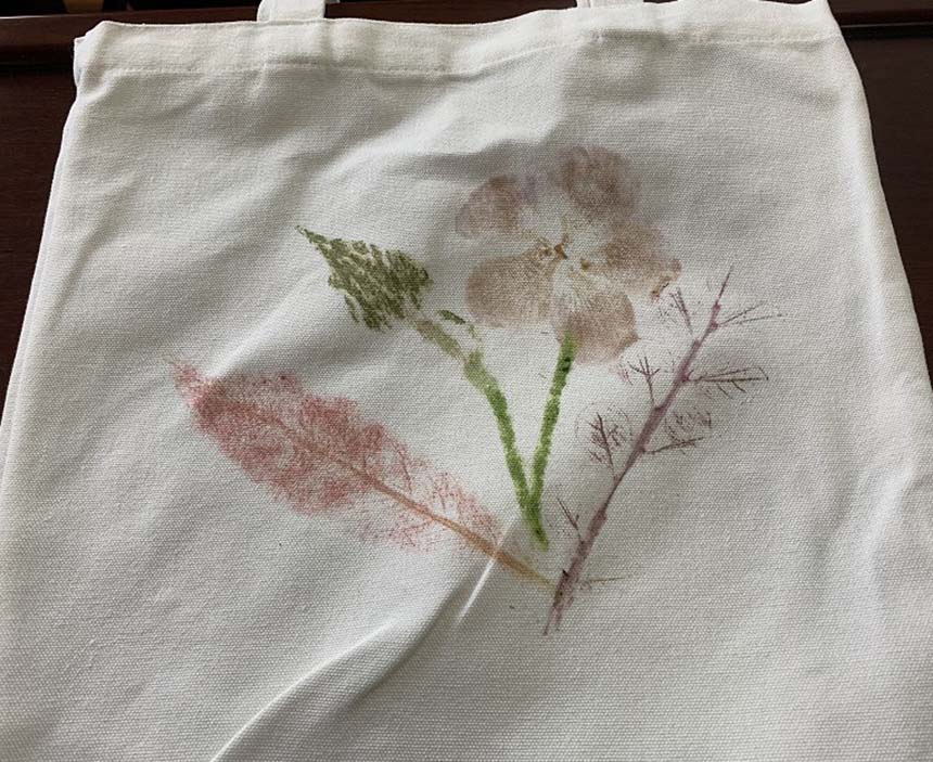 活动课上,师生们将准备好的各式各样的树叶、花草等植物进行拼接,勾勒出美妙神奇的脉络图案,在一次次的敲打中,一幅幅神奇自然画卷浮现在同学的作品中。“这些活动的原材料,桂花、菊花等花草树叶都是我在校园和家中散落拾取的”同学介绍道。“这样的活动体验到了用手、用眼、用心实践传统拓染的乐趣,让我们更加热爱大自然,保护大自然。”老师介绍。