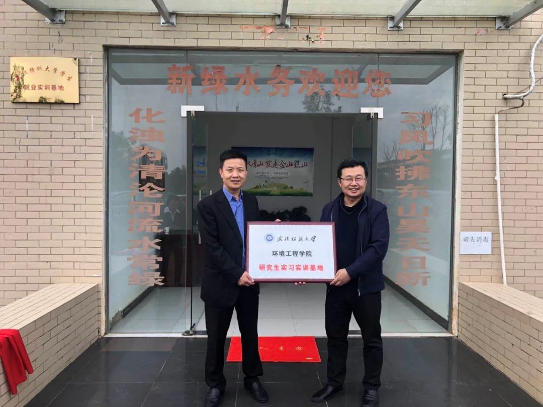 与中碧环保科技公司总经理张斌(图右)为大学生就业实训基地揭牌