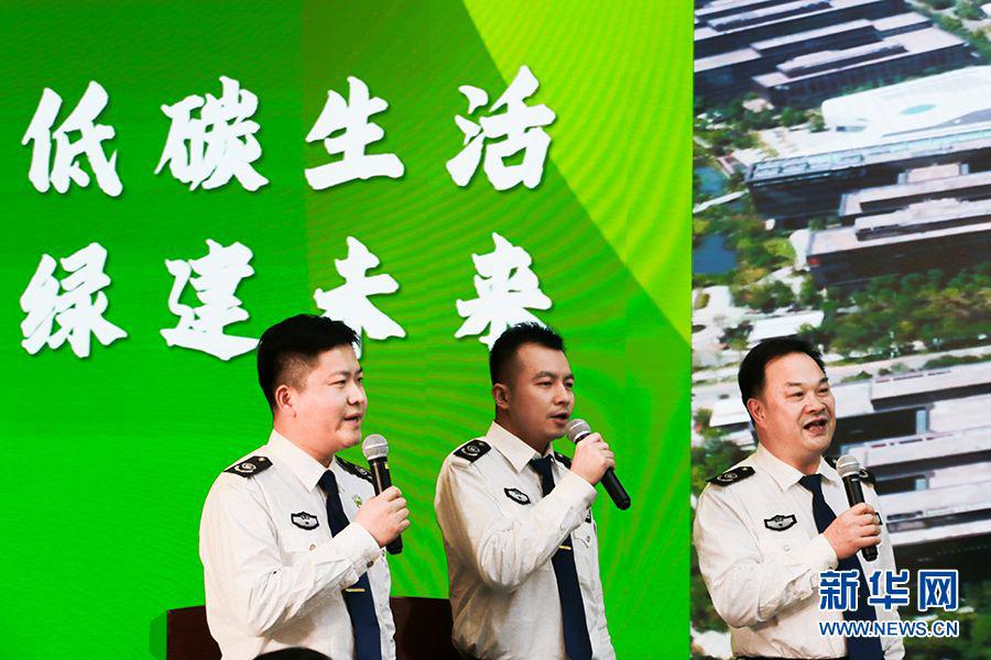 图为武汉生态环境志愿者代表演绎《双碳之歌》。新华网发 陈云 摄