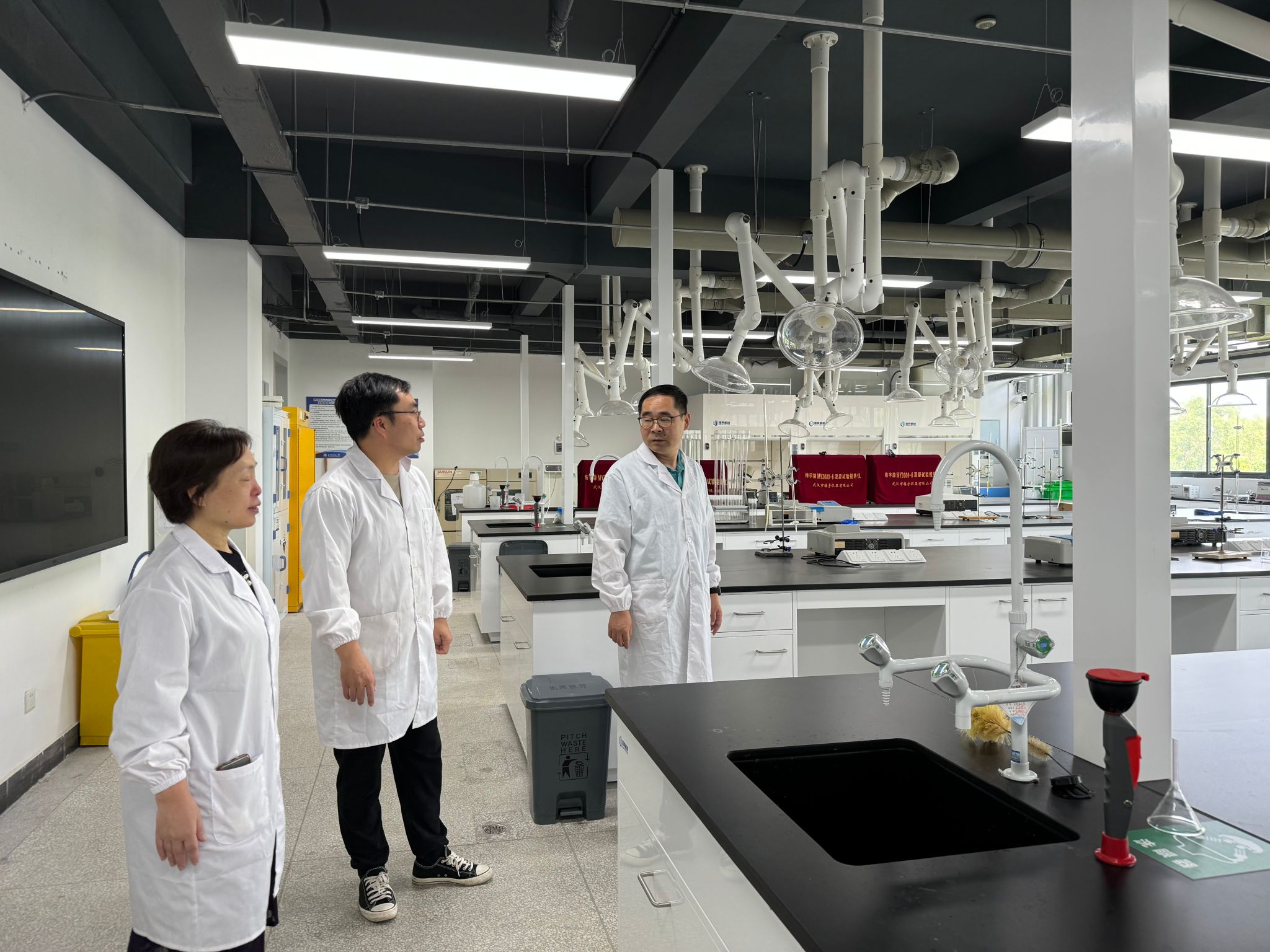 潘院长在检查中强调了危险化学品安全管理的重要性,并要求所有实验室负责人严格按照规定执行,确保师生的生命安全。此次检查不仅提高了师生对危险化学品安全管理的认识,也强化了学院对实验室安全的持续关注。但仍有部分实验室卫生情况堪忧、灭火桶内无沙等情况,具体通报见附件。