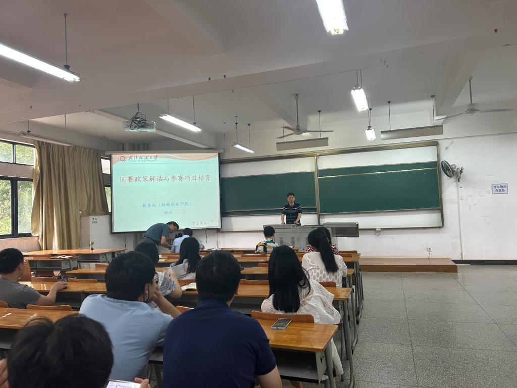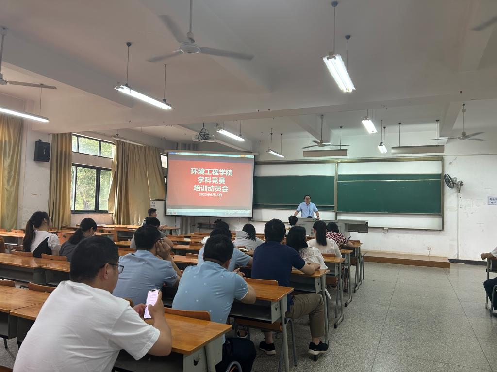 2023年6月15日,在环境工程学院全体教职工大会上,学院邀请教务处(创新创业学院)孙杰老师对大家进行了学院学科竞赛动员培训,大会由潘飞院长主持。在此次动员培训大会上,潘飞院长为大家介绍了我校对学科竞赛的高度重视及学科竞赛在人才培养、学校排名、教师职称评审等方面的重要性,孙杰老师为老师们介绍了学校的考核制度、职称评审制度在学科竞赛方面的政策,以及百花堂