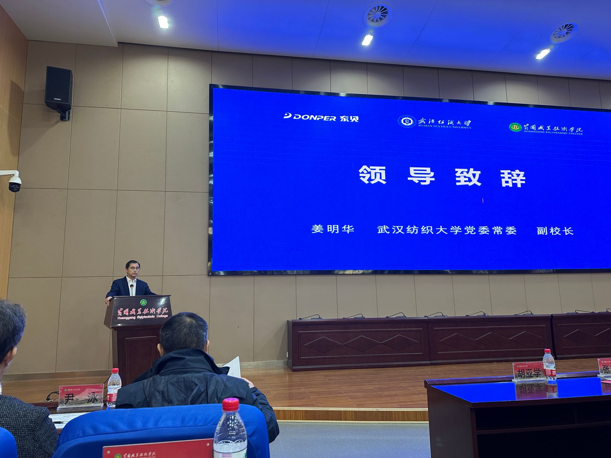 党委常委、副校长姜明华,黄冈职业技术学院党委副书记、校长姜安心出席会议。来自政府部门、本科院校、高职院校、中职学校、行业协会、企业等160余名代表参加了大会。作为共同体牵头单位,百花堂