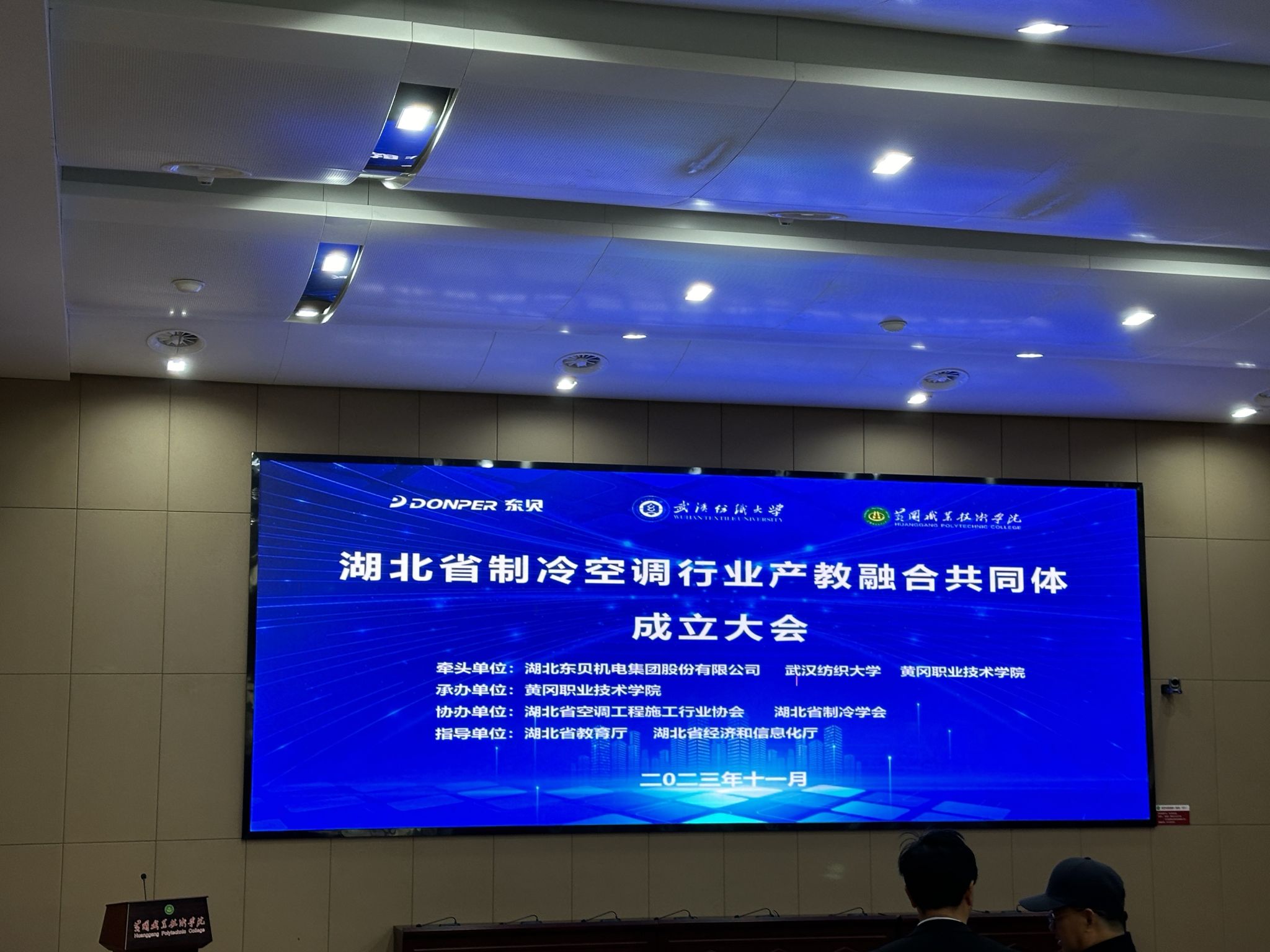 11月29日,湖北省制冷空调行业产教融合共同体成立大会在黄冈职院举行。省教育厅为共同体成立发来贺信,湖北东贝机电集团股份有限公司副总裁姜敏,百花堂