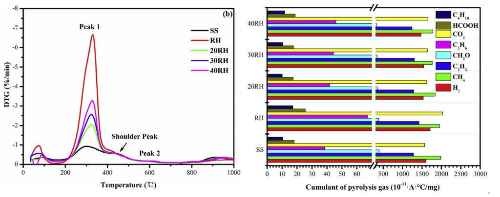 论文通过热重质谱联用设备(TG-MS)研究污泥与稻壳的共热解行为,结果表明稻壳的加入抑制了CH化学物向气相产物的转换,促进了CH元素在固相产物-生物炭中的富集,同时极大的增加了固相产物的比表面积。该研究为污泥的高值化材料利用技术提供了新的思路。