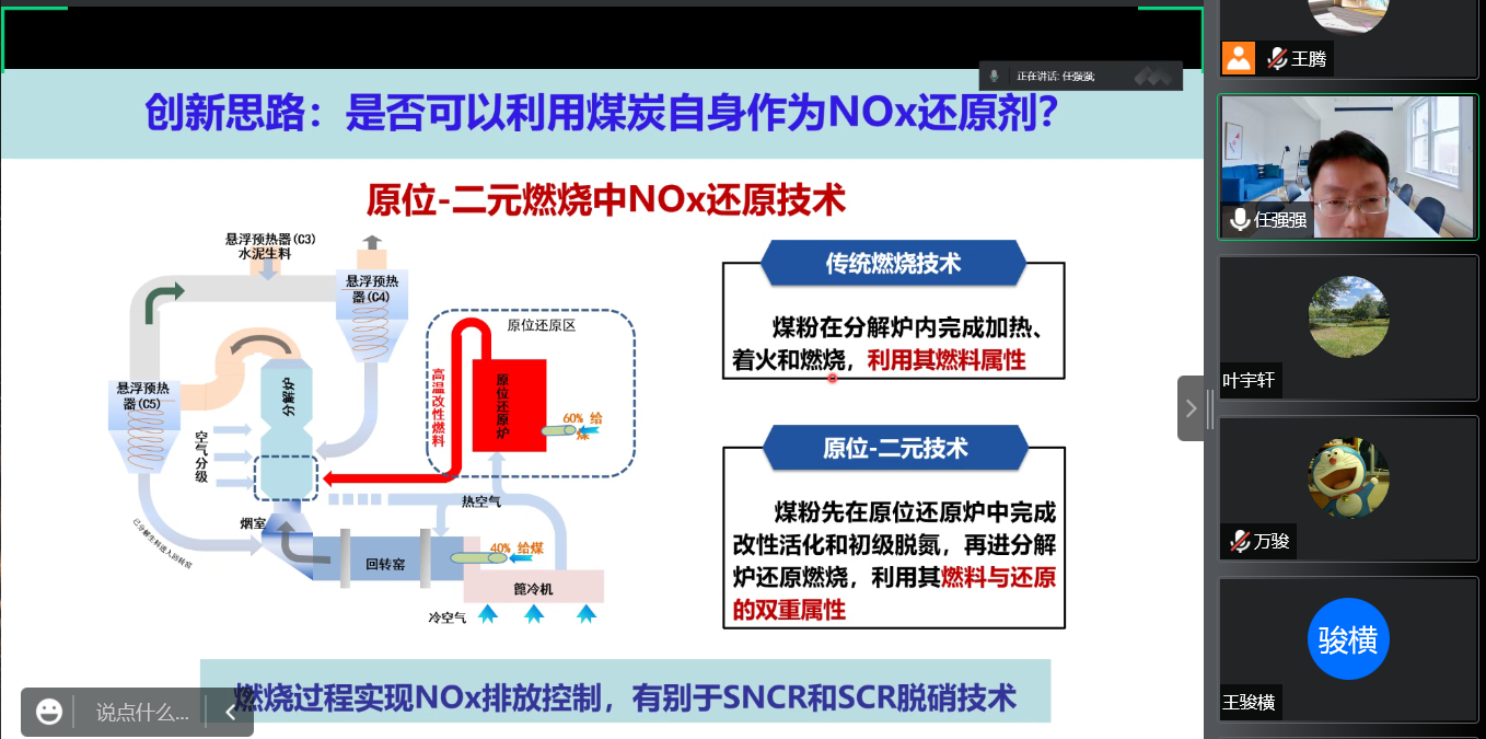 9月28日上午,学院在线上举办了学校第205期阳光论坛。本次论坛邀请了中国科学院工程热物理研究所任强强研究员作了题为“碳中和目标下的燃煤水泥窑炉:低氮与低碳技术研究进展”的报告。论坛由王腾副教授主持,学院教师和研究生参与了此次论坛。
