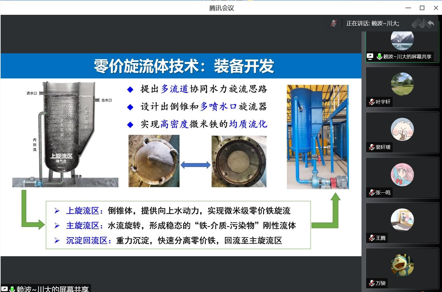 9月13日下午,环境工程学院在线上举办了学校第195期阳光论坛。本次论坛邀请了四川大学赖波教授作了题为“零价铁旋流体技术装备及工程应用”的报告。论坛由叶宇轩博士主持,学院教师和研究生参与了此次论坛。