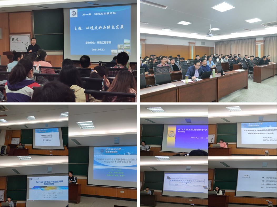 本次论坛以“环境友好与绿色发展”为主题,研究生柯志坚、尹传坤、周思吉、左诗语、贡一民、邱思微和殷惠芬等7名同学以《CuMnO2活化过一硫酸盐降解酚类有机污染物》《过渡金属基催化剂构建及其过硫酸盐催化机制盐》等为题就研究进展一一进行了交流分享,教授委员会成员对研究生报告进行了提问和逐一点评。