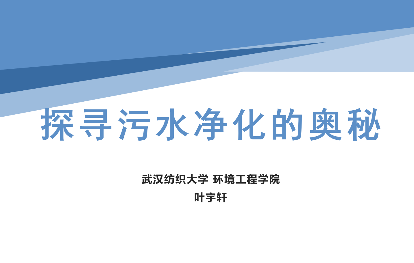 叶宇轩以“探寻污水净化的奥秘”为主题,为同学们展示水中污染物的去除过程。他介绍了其团队关于去除水中污染物的研究进站,勉励感兴趣的同学未来一起从事相关的研究,为水环境保护贡献自己的力量。