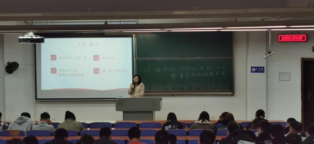 会上,姚瑶向毕业生介绍了目前各班的考研、签约情况,重点介绍了西部计划、三支一扶、征兵入伍、各地人才引进资讯、国家专项招聘计划等基层就业相关政策,并分享了基层就业典型援藏干部左嘉伟的事例,学院近年来基层就业情况,鼓励同学们深入了解基层就业政策,运用专业知识服务地方、服务家乡。
