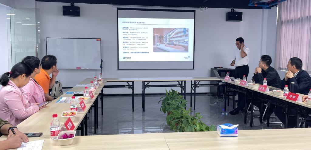 学院教师一行参观了江森约克湖北省实训中心,伍韩锋、杨元元详细实训中心的应用场景和实训方案,双方就公司产品参数、运营原理等方面进行了深入的沟通交流。