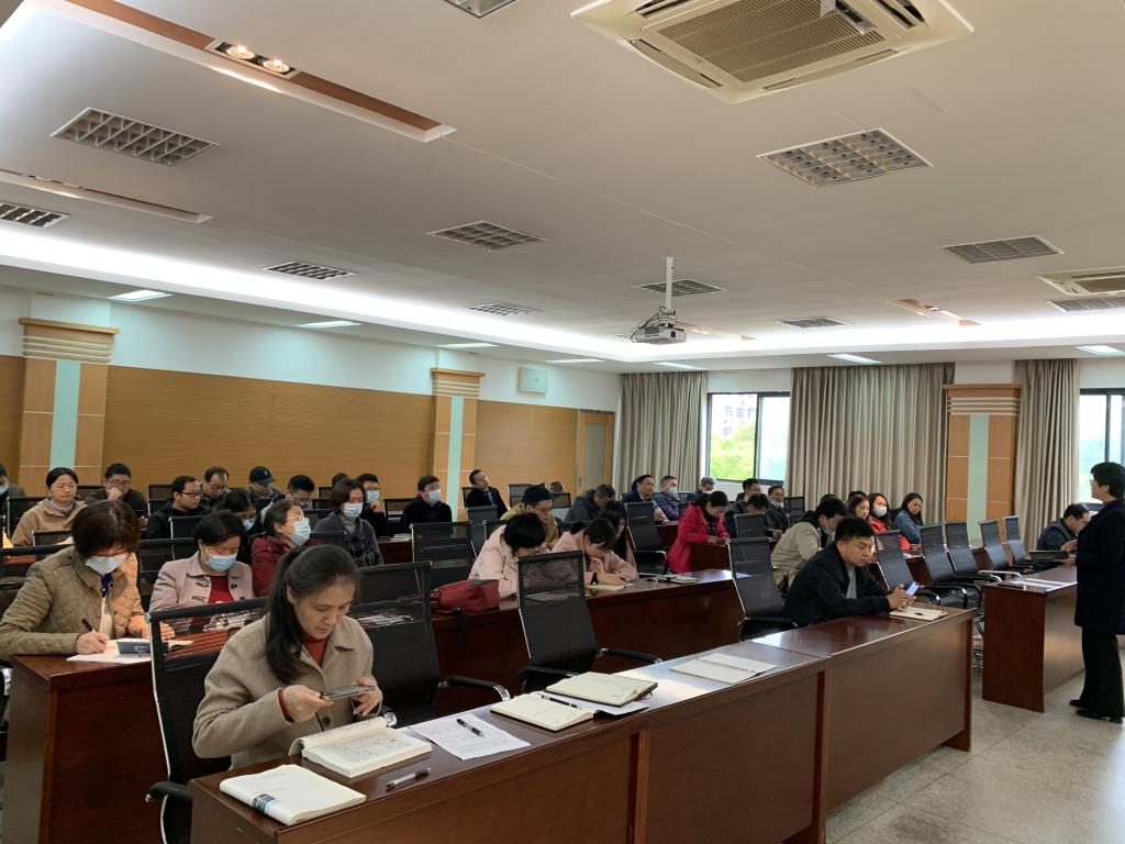 4月1日下午,学院举行全体教职工大会,开展党史学习教育动员大会,党委书记谢晓萍组织大家一起集体学习学校印发的《中共百花堂