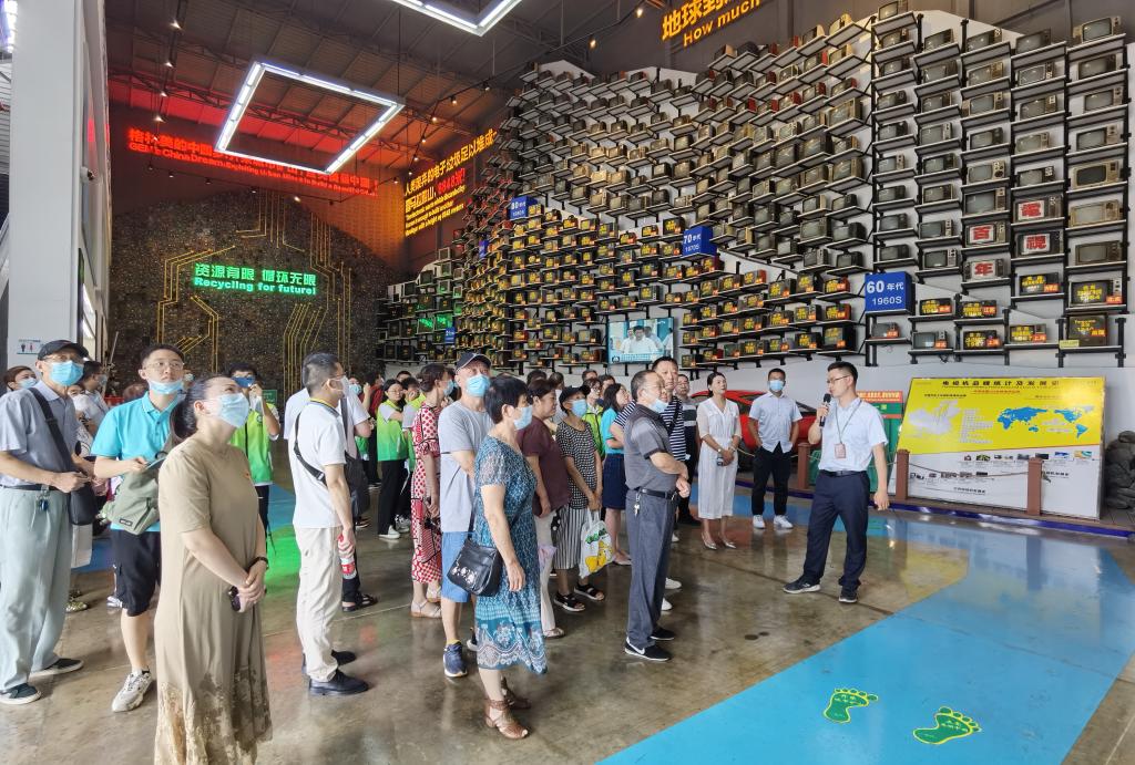 在格林美武汉低碳产业园的城市矿山博物馆里,一条特殊“山脉”引人注目。它由364台不同年代的废旧电视机组成,寓意着人类报废的电子废弃物足以堆成一座喜马拉雅山。格林美武汉研究院院长宋华伟博士介绍道:“2013年7月22日,习近平总书记在这里考察时指出,变废为宝、循环利用是朝阳产业,使垃圾资源化,这是化腐朽为神奇,既是科学,也是艺术,而我们企业正是将习近平总书记的话牢记在心,稳扎稳打地发展循环经济。”党员们看到废旧电池回收与电池材料制造、电子废弃物循环利用与高值化利用、报废汽车回收处理与整体资源化等循环产业链,还有回收双层巴士改造的员工通道,纷纷表示课本上的低碳循环在生产场景中更加生动和立体。