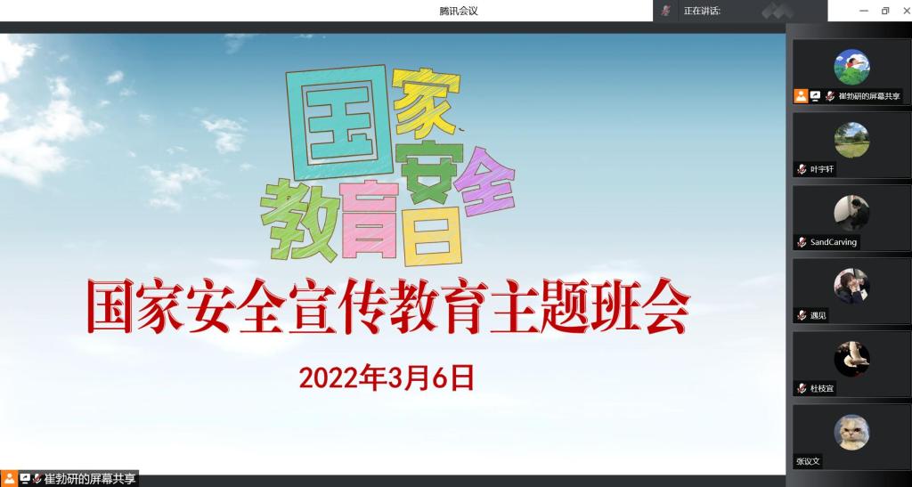 国家安全是国家生存和发展最基本、最重要的前提,国家安全的实现有赖于人人参与。3月6日晚,环境学院各年级通过线上方式举行国家安全主题教育班会,进一步加深同学们对维护国家安全认识。