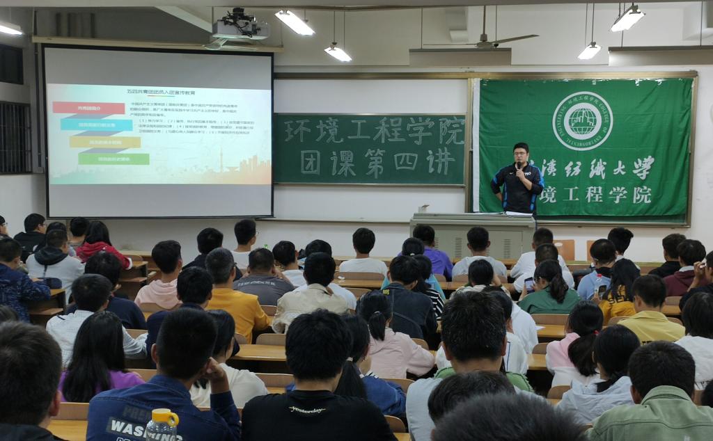 分团委书记刘文祥老师主讲,环境工程学院建环专业和给排水专业全体团员参加。