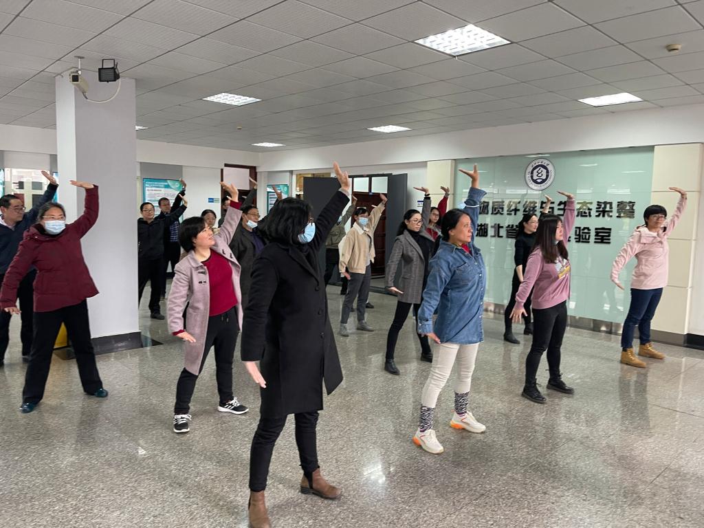 2021年4月1日,校体育部向百花堂 工会全体职工推广八段锦健身操法,通过现场演示、分步教学、完整跟练的方式,为大家提供这套实用方便、行之有效的健身锻炼方案。本次活动的开展得益于校体育部叶东茂教授的亲身经历,因他在疫情期间锻炼八段锦体会到这一中华传统养生文化宝藏确实有强身健体、疏通筋骨之效,才有了号召全校学习八段锦的想法。本次活动也得到了全体职工的大力支持和积极响应,现场气氛浓厚而融洽,有职工反馈跟练两次便发热出汗的现象,大家纷纷称赞这次活动举办有意义。