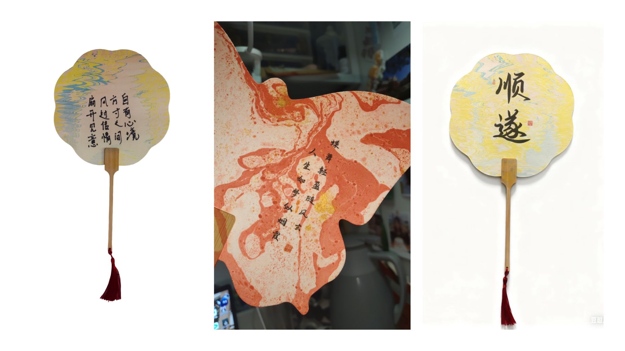 自活动启动以来,同学们积极响应,共征集到绘画、手工、摄影、数字媒体等各类作品数百件,同学们围绕自我认知、情绪管理、生命成长等主题,结合秋日元素,创作出了一批兼具艺术美感与心理深度的优秀作品。绘画作品如静谧的森林风景、灵动可爱的松鼠,色彩清新,展现了同学们对自然之美的细腻观察与内心宁静的追求;手工艺品琳琅满目,既有利用秋日落叶拼贴出的蝴蝶造型,寓意蜕变与希望,也有书写着“顺遂”字样的精美团扇,寄托了对美好生活的祝愿;此外,还有栩栩如生的黏土作品、充满童趣的小蛋糕造型手工等。每一件作品都凝聚了创作者的情感与思考,将心理健康的主题通过具象化的艺术形式生动呈现。