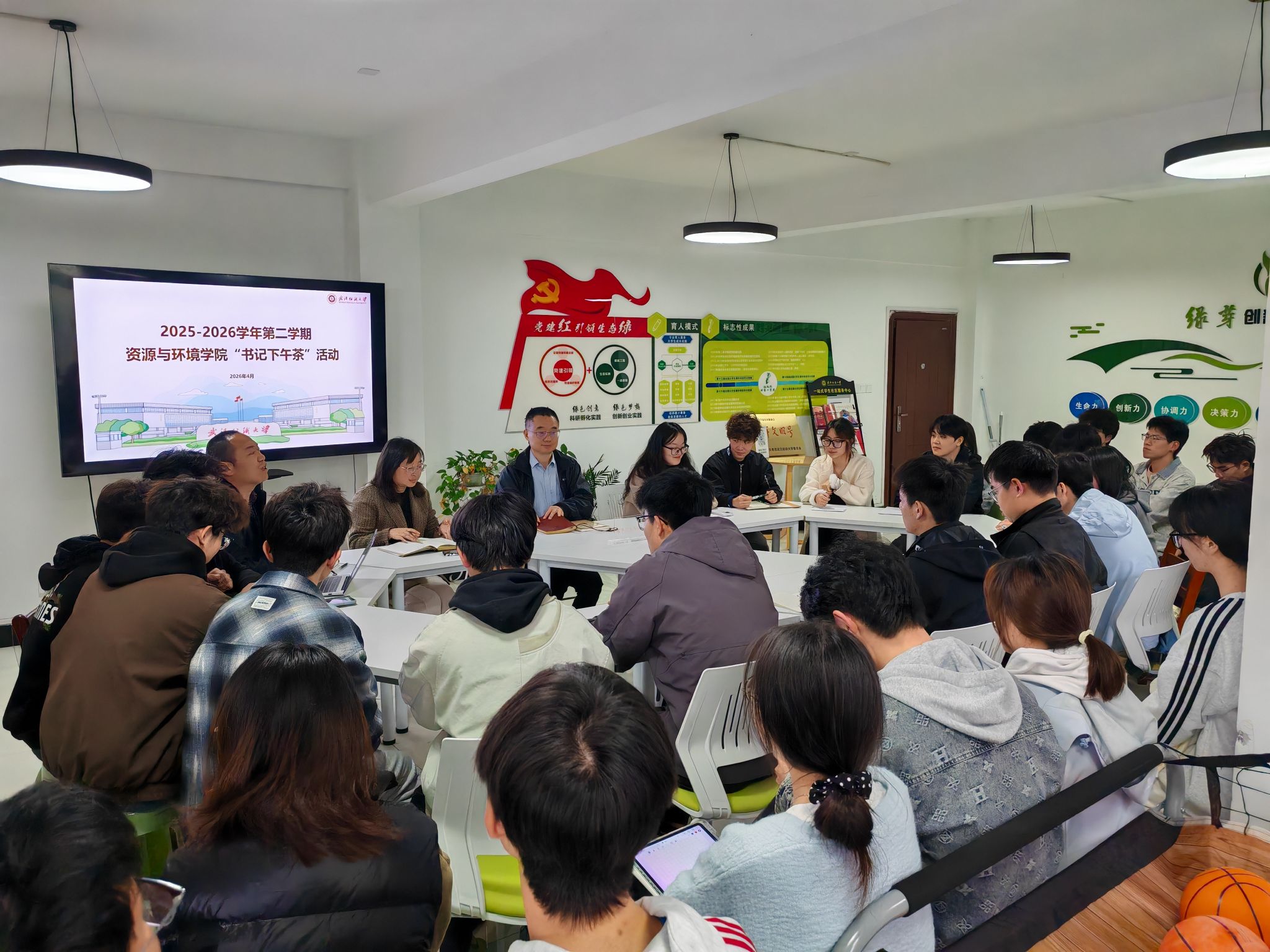 4月2日下午,学院第8期“书记下午茶”在10栋“绿芽创新实践工作室”学生社区举行,学院党委书记郭俊、副书记姚瑶、团委书记毛成兴与学生代表面对面,倾听他们的声音,并就大学生职业规划、学生干部技能提升、团学工作开展等话题进行了探讨。
