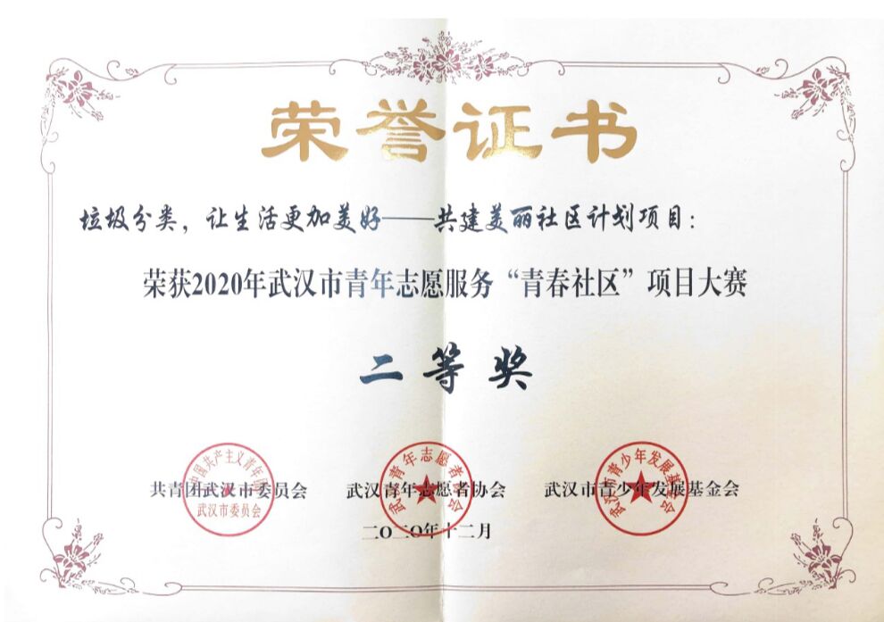 绿色环保协会的《垃圾分类,让生活更加美好——共建美丽社区》项目荣获“青春社区”项目大赛二等奖。