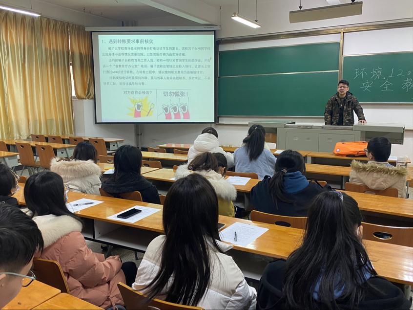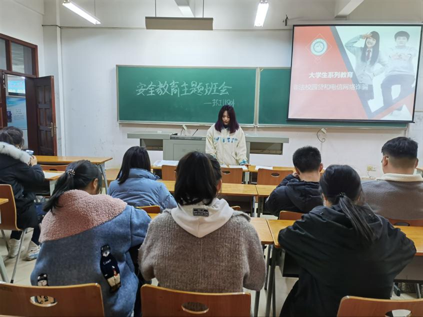 班会上,各班班主任及辅导员通过ppt以及真实案例告诉同学们什么是电信诈骗,深入分析生活中常见的电信诈骗的主要手段与类型。指出骗子往往通过学生们常用的通讯软件进行诈骗。