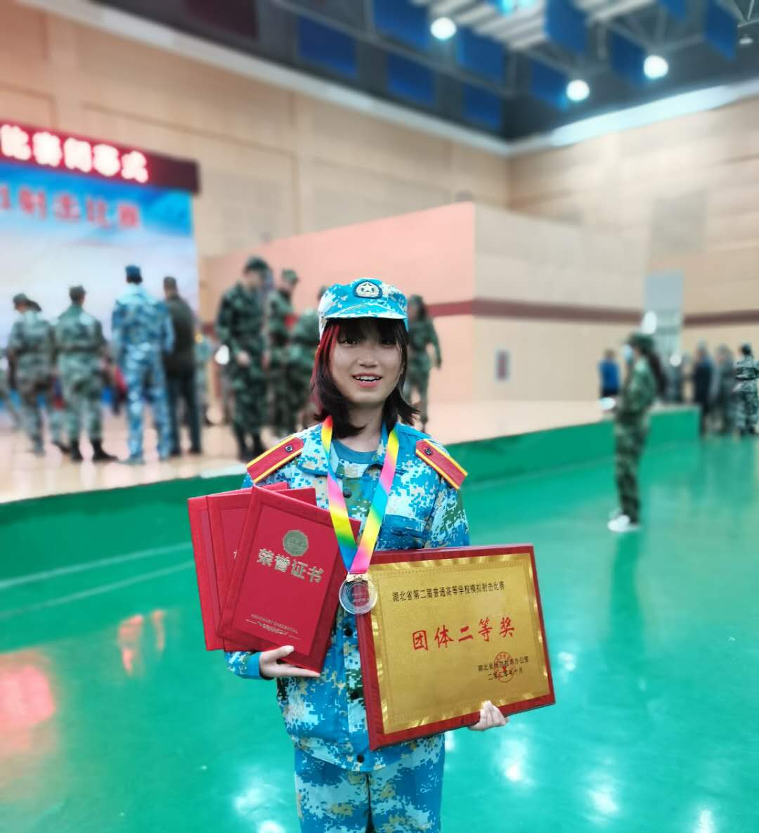 2020级王蓉蓉同学获得大赛二等奖。赛后,她难掩心中喜悦表示,参加比赛,拿起“钢枪”,收获的不仅仅是一份特殊的经历和成绩,也让国防有我、保家卫国的责任感、使命感油然而生。