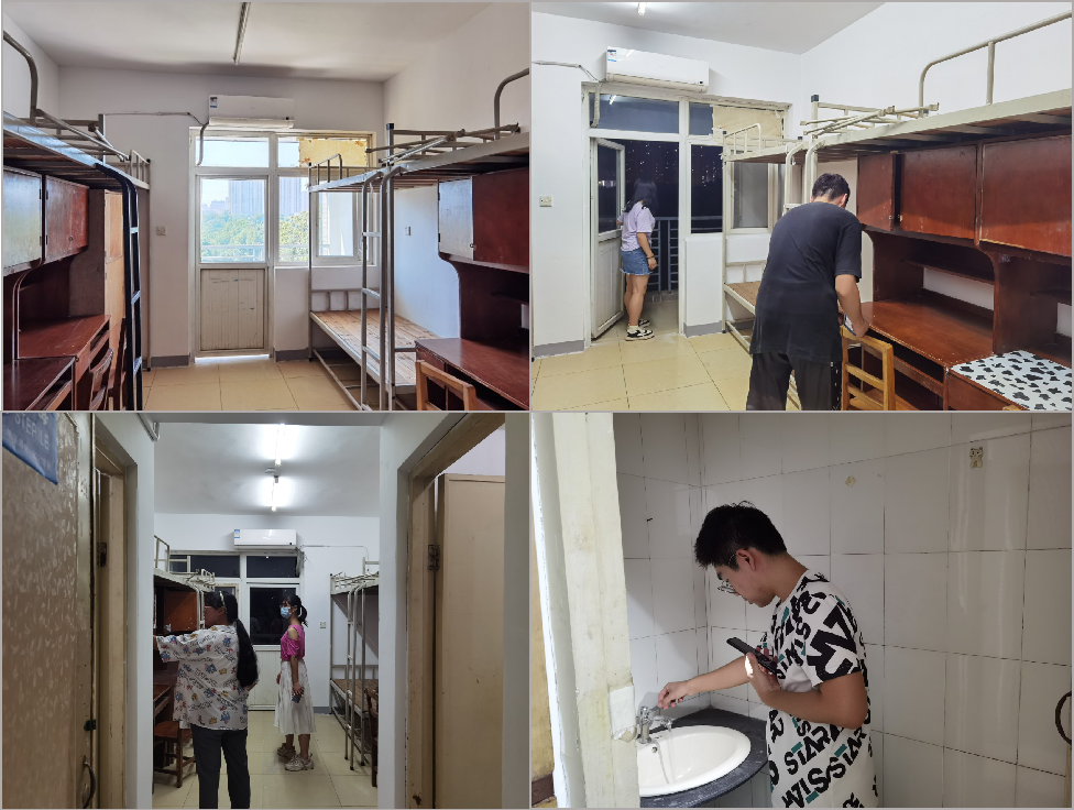 副班主任一一核实新生宿舍床位、检查宿舍水电、门窗桌椅等设施,如门锁是否损坏、桌椅是否齐全、洗脸盆和厕所等水管是否漏水、床铺是否需要更换加长等情况,对有需要维修的情况进行如实详细登记,以确保新生能够舒心、安心的入住。“新生宿舍明亮干净,阳台也很宽敞,班群里新同学们很期待他们的宿舍。”环境12101班副班主任宋致远如是说。