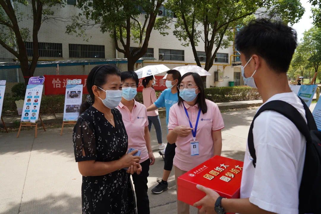 梅收是来自湖北黄石的一名新生,开朗乐观的他,从小成绩优秀,初中就担任了班委,高中更是当了三年的班长,还曾经报考过飞行员,立志为祖国效力。黄运平来到迎新点,跟小梅聊学习、聊未来、聊家常,她详细地了解了梅收的家庭情况、个人规划等,并向梅收介绍了学校的相关资助奖补政策,希望梅收能安心求学,遇到困难,及时反映,学校、学院一定能为他做好服务。了解到梅收对环境专业十分感兴趣时,黄运平还和他一起讨论起专业发展方向,勉励他刻苦学习,继续保持乐观的心态,以阳光勃发的精神面貌,规划好自己的大学学习生活,为四年后的灿烂前程,打下一个坚实的基础。
