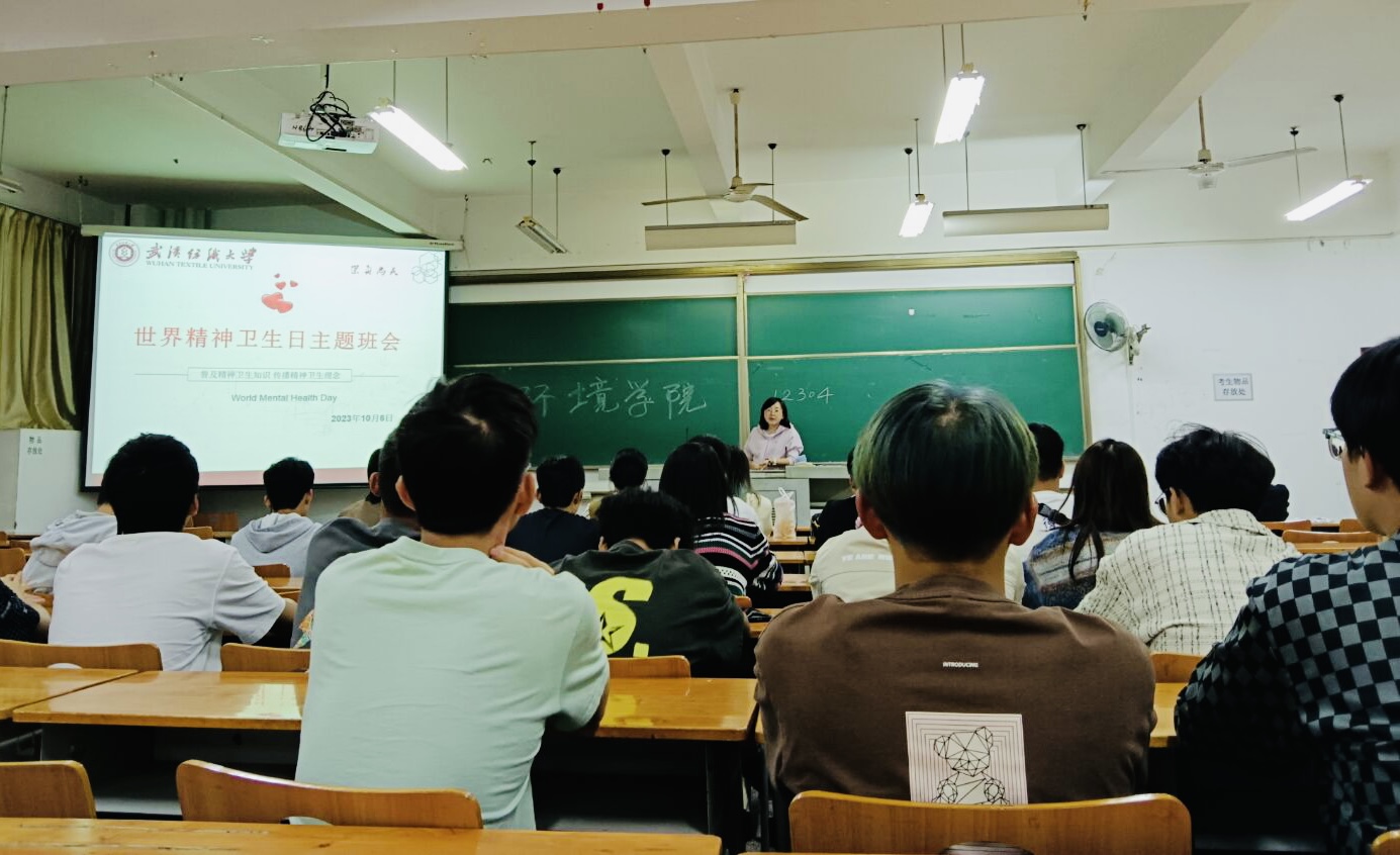 班会伊始,各班班主任首先向同学们介绍了世界精神卫生日的由来及其意义,强调了关注心理健康对于个人成长和社会发展的重要性,还分享了“心理健康的十条标准”“如何甄别心理状况是否健康”等心理知识点。班主任重点向同学们介绍了近期即将开展的 “沟通理解关爱 心理和谐健康”世界精神卫生日主题活动”“心理微课大赛暨优秀学生主讲人选拔”“心理创意作品大赛”“团体辅导式班会大赛”“恋爱心动体验活动”等,鼓励同学们积极踊跃报名参加。