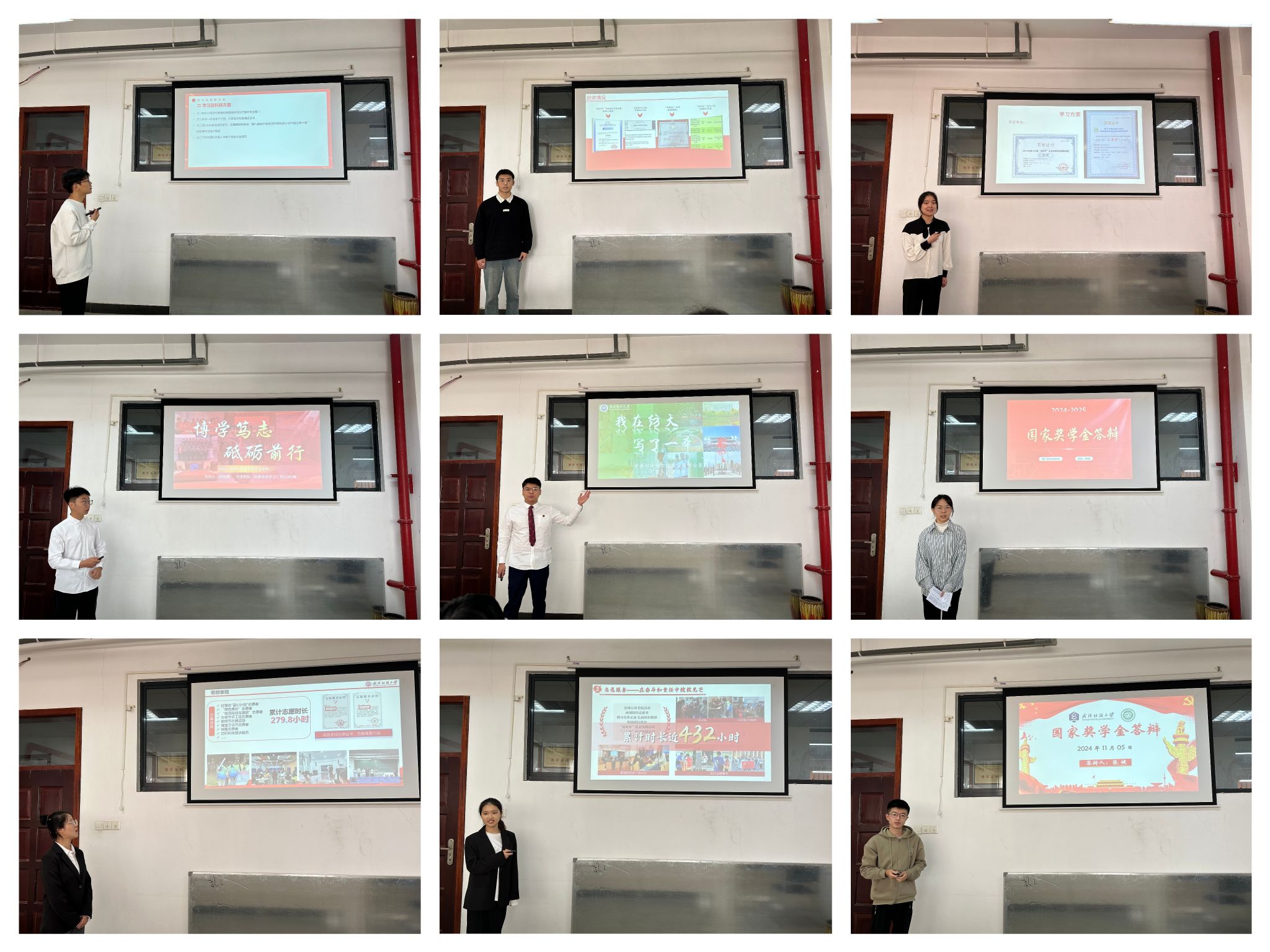 9名优秀本科生依次上台,围绕基本情况、思想成长、学业成绩、科研创新竞赛、学生工作表现、社会实践与志愿服务、文体发展等方面进行答辩,描绘自身在学习生活成长道路上所获得的成绩与收获,也展示出学院学子风华正茂、锐意进取的精神风貌。与会观摩的同学们不禁爆发出赞叹之声和阵阵掌声。