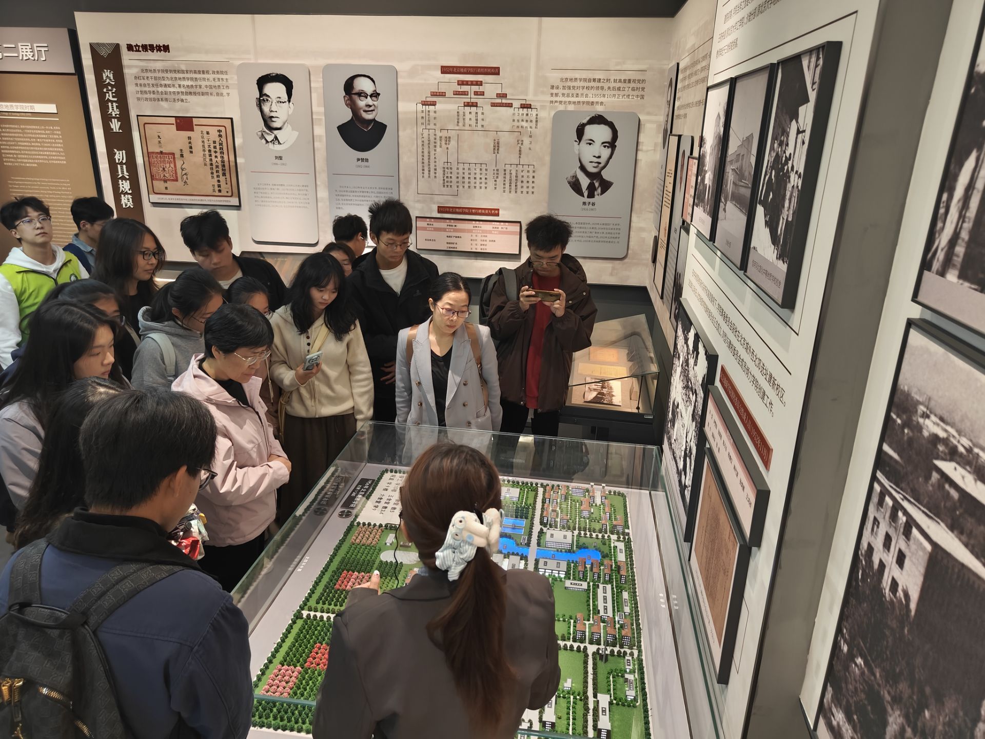 在中国地质大学校史馆,同学们沿着时间的脉络,开启了一场跨越时空的校史探索之旅。从老一辈地质工作者的坚守奉献到新一代青年学子的砥砺前行,一幅幅珍贵的老照片、一件件承载记忆的实物展品,诠释了地质科研工作者“地质报国“的家国情怀。同学们驻足凝视、认真聆听,不时交流感悟,深刻体会到要传承这份精神财富,需将其内化为砥砺前行的动力,肩负起新时代青年的使命与担当。在党建展陈区,同学们从党的光辉历程中汲取了奋进力量。