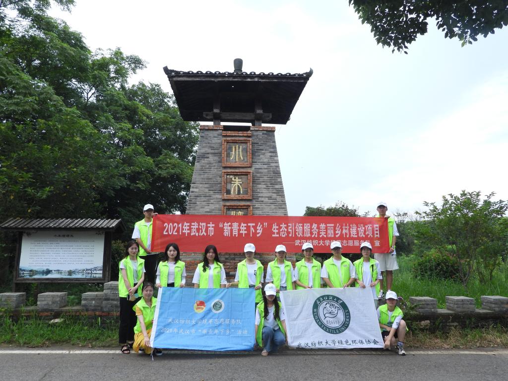 绿芽志愿服务队成员在环境工程学院党委书记谢晓萍、指导老师姚瑶的带领下,来到武汉市江夏区五里界小朱湾村,开展“绿色生态引领美丽乡村建设”实践调研活动。