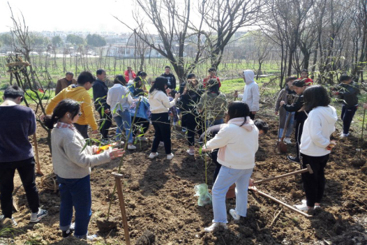 绿色代表着清新、生命、希望和未来,《礼记》有言:“孟春之月,盛德在木”,在植树节来临之际,绿协志愿者们自购了30棵树苗,与后勤的老师们一起选址阳光三栋寝室楼旁。活动当天,志愿者们早早将树苗搬到现场,在老师的指导下,挥镐舞锄、挥锹培土,合力种下了幼苗,种下了无限的希望。