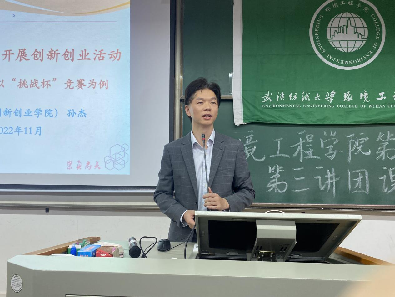 孙杰老师以“共青团员如何开展创新创业活动”为主题,以“新生挑战杯”为例,从“什么是挑战杯”“挑战杯的获奖情况及部分学生介绍”“创新创业伴随大学生涯”三个部分向同学们介绍了大学生创新创业应具备的条件、能力与准备工作。鼓励同学们参与“新生挑战杯”与社会接轨,积极推动我校学生课外科技活动的发展,在参赛过程中巩固专业知识,培养科学思考、团队合作等精神,多方位提高同学们的社会能力,增强综合素养。