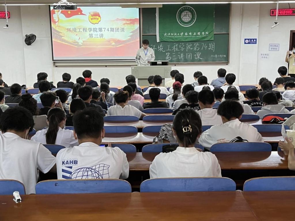 于崇志楼T102教室顺利开展了第74期第三讲团课。团课邀请了教务处(创新创业学院)孙杰老师为主讲人,环科12001班张珺、建环11901班刘鹏作为参赛经验丰富的学生代表进行交流分享,2022级全体学生参加会议。