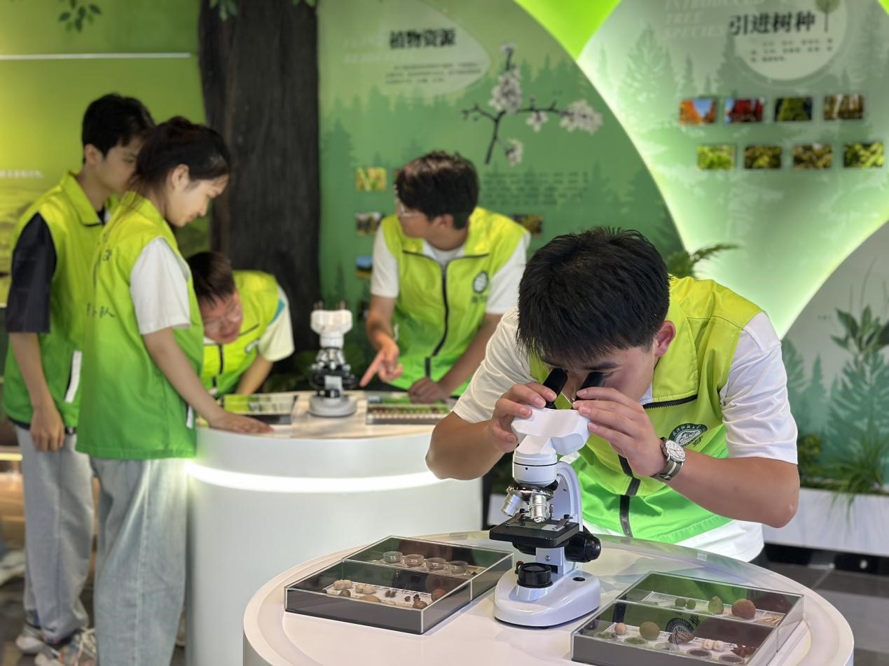 下午3点,绿芽实践团来到梁子湖生态文明展示馆进行参观学习。作为华中地区首个以湖泊保护、水生态修复、水生物多样性保护为特色的研究展示中心,场馆以中国水文化为核心,通过“时光长廊”“梁子湖志”“大湖记忆”“湿地传说资源的保护及合理利用”等主题给人以身临其境、人水相依之感在研学体验区,实践团成员通过显微镜区探索微观生态的奥妙。